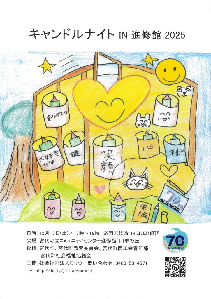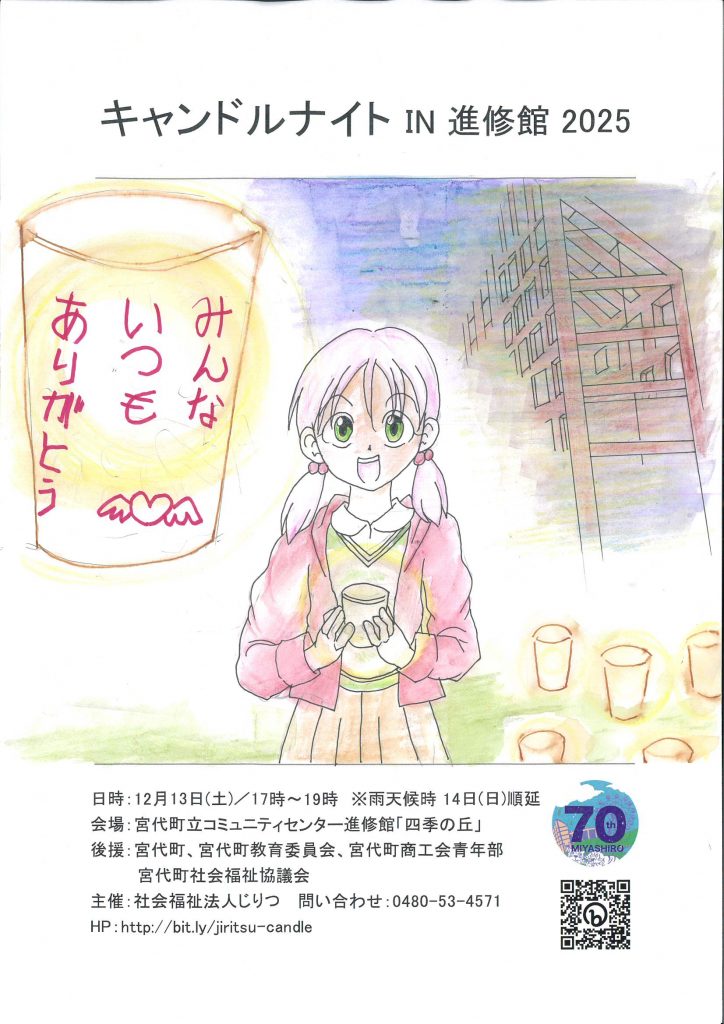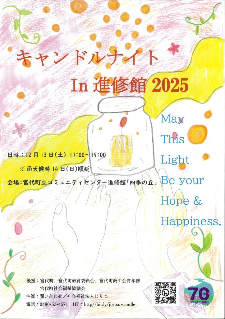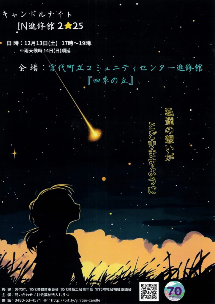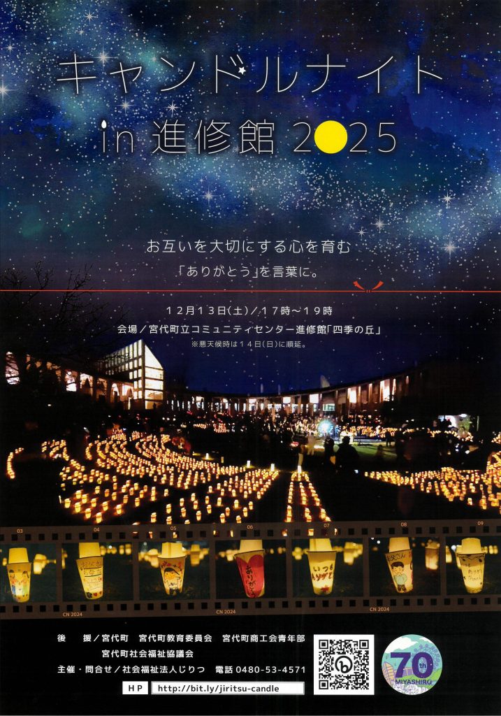2025年12月13日(土) 17:00~19:00 進修館コミュニティーセンターにて、キャンドルナイトin進修館2025を開催いたします。